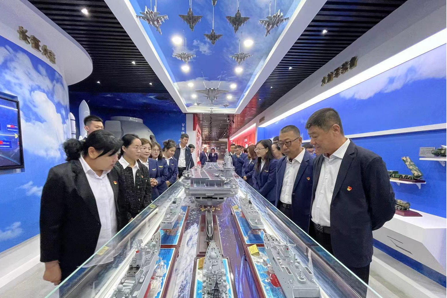 国防教育展厅内涵盖“浴血奋斗 图强进取”、“强军兴军 阔步前行”、“大国重器 扬我国威”、“弘扬传统 筑我国防”四个板块内容,在讲解员的带领下,干部职工重点了解了抗美援朝、捍卫主权、大国阅兵等篇章,通过一张张红色照片、一段段红色记忆、一件件真实故事,回顾了人民军队强边固防的斗争历史;还现场观看了红色电影《长津湖》节选片段、体验模拟太空舱,观摩各类军事装备模型,进一步了解了我国高性能武器装备发展动态和国防科技发展历程。