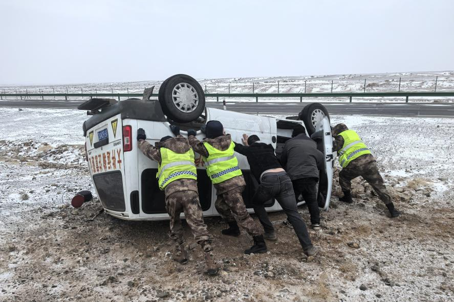 12月11日,达来呼布路网监测中心机电维护人员在机电设备巡检途中,于G7京新高速K1752上行处发现一辆大件护送车辆因降雪路面湿滑侧翻至隔离带下方,驾驶员被困车内,情况危急。