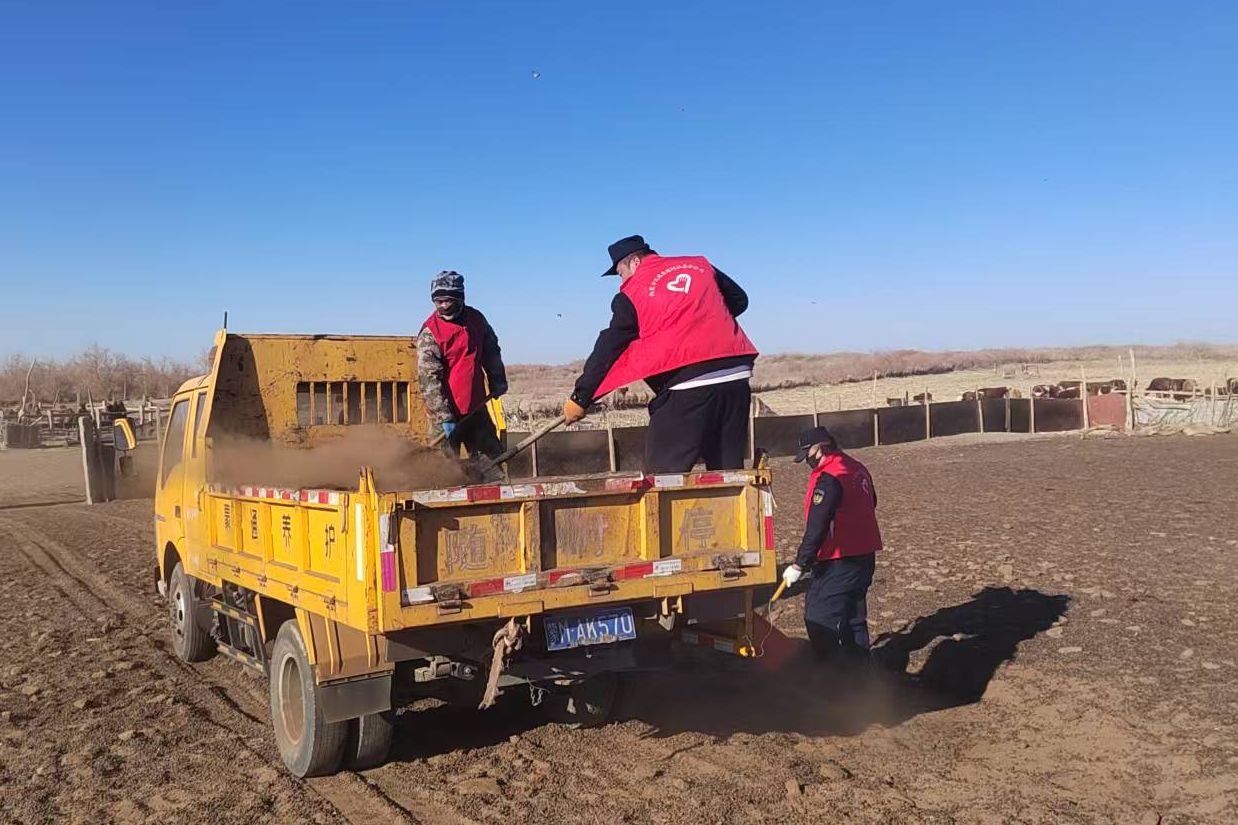 天鹅湖收费所则携手自治区交通运输综合行政执法总队十二支队十大队、蒙通养护天鹅湖养护作业中心,赴乌兰图格嘎查开展帮扶助困服务。志愿者们分工协作,清理牛圈、规整圈舍,搬运草料、照料牲畜,同时开展环境整治,清理周边杂物,改善牧区人居环境。劳动间隙,志愿者与牧民深入交流,用暖心行动为群众排忧解难。