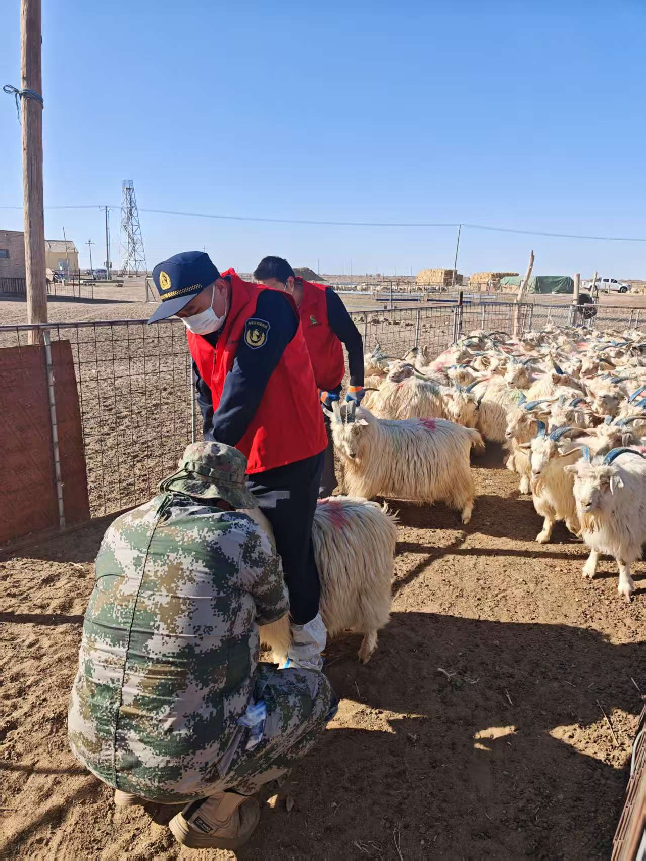 清晨九点,志愿者们便抵达牧民家中,迅速投入到防疫工作中。大家分工协作、配合默契,有的负责固定羊只,有的帮助专业防疫人员进行疫苗注射、采血检测。本次防疫工作持续至下午两点半,共计为317只羊圆满完成疫苗接种与血样采集任务。此次活动既保障了牧民羊群健康安全,又拉近了交通人与地方群众的距离,充分展现了内蒙古交通集团青年志愿者的责任担当。