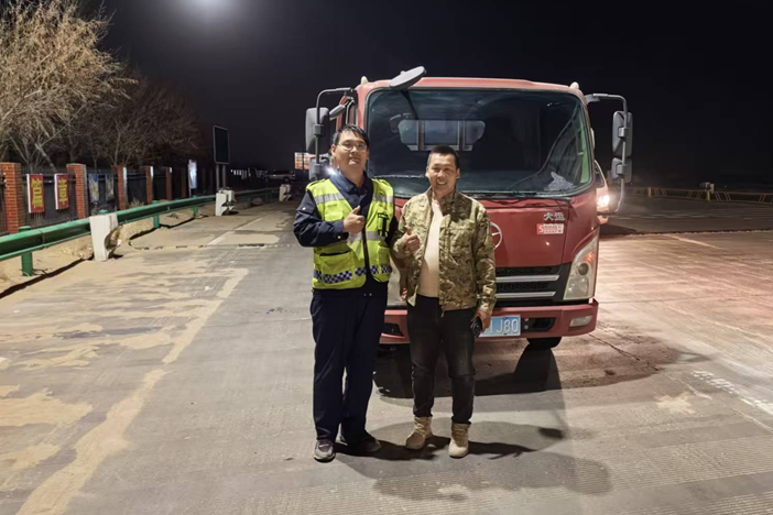 凌晨4时,夜色未尽、寒风凛冽,一名司机驾车行驶至额济纳旗收费所广场时,因燃油耗尽车辆无法继续行驶,只得停驻等待求助。所站工作人员在巡查中及时发现情况,第一时间上前了解详情,并耐心安抚司机焦急情绪。