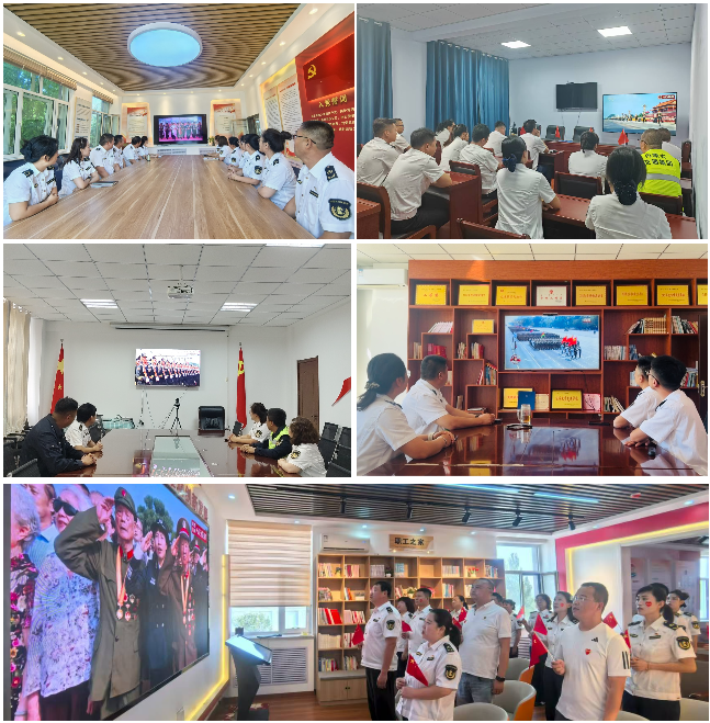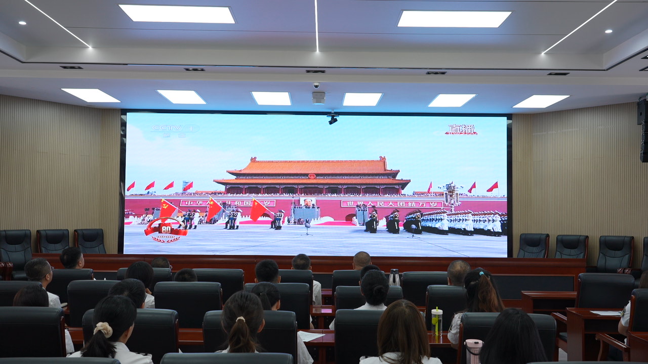 在分公司及各基层单位会议室内,干部职工们身着整齐制服或工装,齐聚屏幕前,目光专注,认真聆听习近平总书记发表的重要讲话。阅兵环节,随着礼炮齐鸣、军乐奏响,《义勇军进行曲》在天安门广场回荡,壮阔的阅兵场景通过屏幕传递到每一个角落。整齐威武的方队、气势恢宏的装备、振奋人心的空中梯队,让大家心潮澎湃,民族自豪感油然而生,观看现场一次次爆发出热烈的掌声和由衷的赞叹声。