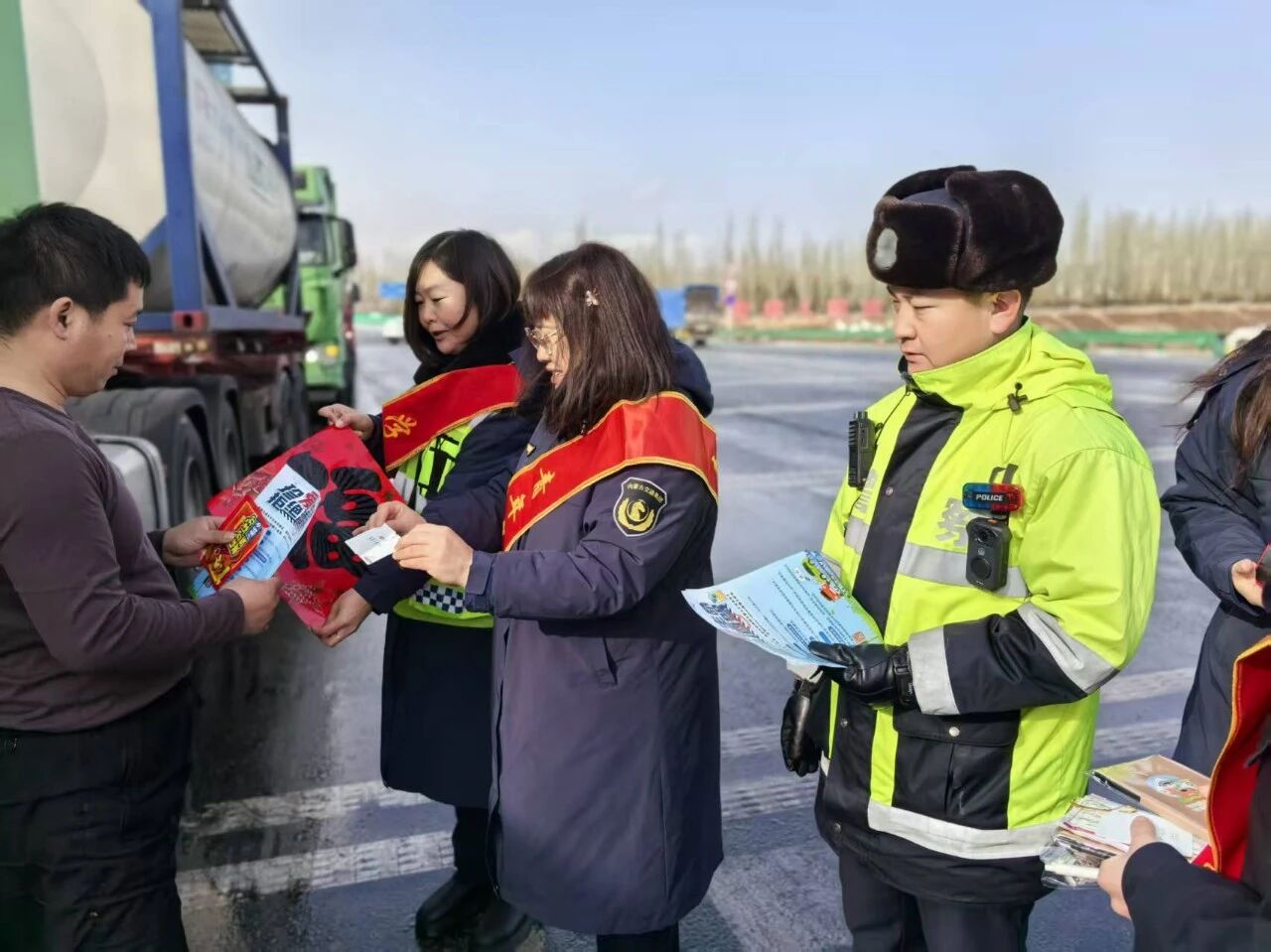 乌拉山高速公路收费所。乌拉山高速公路收费所以“平安春运、便捷春运、温馨春运”为主题,1月30日10时同乌拉山高速交警、路政,乌拉山养护作业中心,共同开展“春运”活动启动仪式,对出行司乘人员宣传交通安全及志愿服务。全力做好春运安全生产和服务保障各项工作,确保2026年春运工作有力有序,强化主动服务意识,提高便民服务质量,设置便民服务台,通过悬挂宣传条幅、发放福字、暖宝宝、节日贺卡、宣传单等,加强交通秩序维护、强化疏堵保畅,同时配备开水、简易包扎纱布、创可贴、针线包、简易维修工具等,开展形式多样的便民服务,营造和谐、舒适的通行环境。用实际行动确保每一位司乘人员温暖出行,平安回家。同时认真落实国家绿色通道政策,为春节期间鲜活农产品车辆提供安全、快速、便捷的通行保障服务。努力为人民群众欢度春节、平安出行创造畅通的道路交通环境。