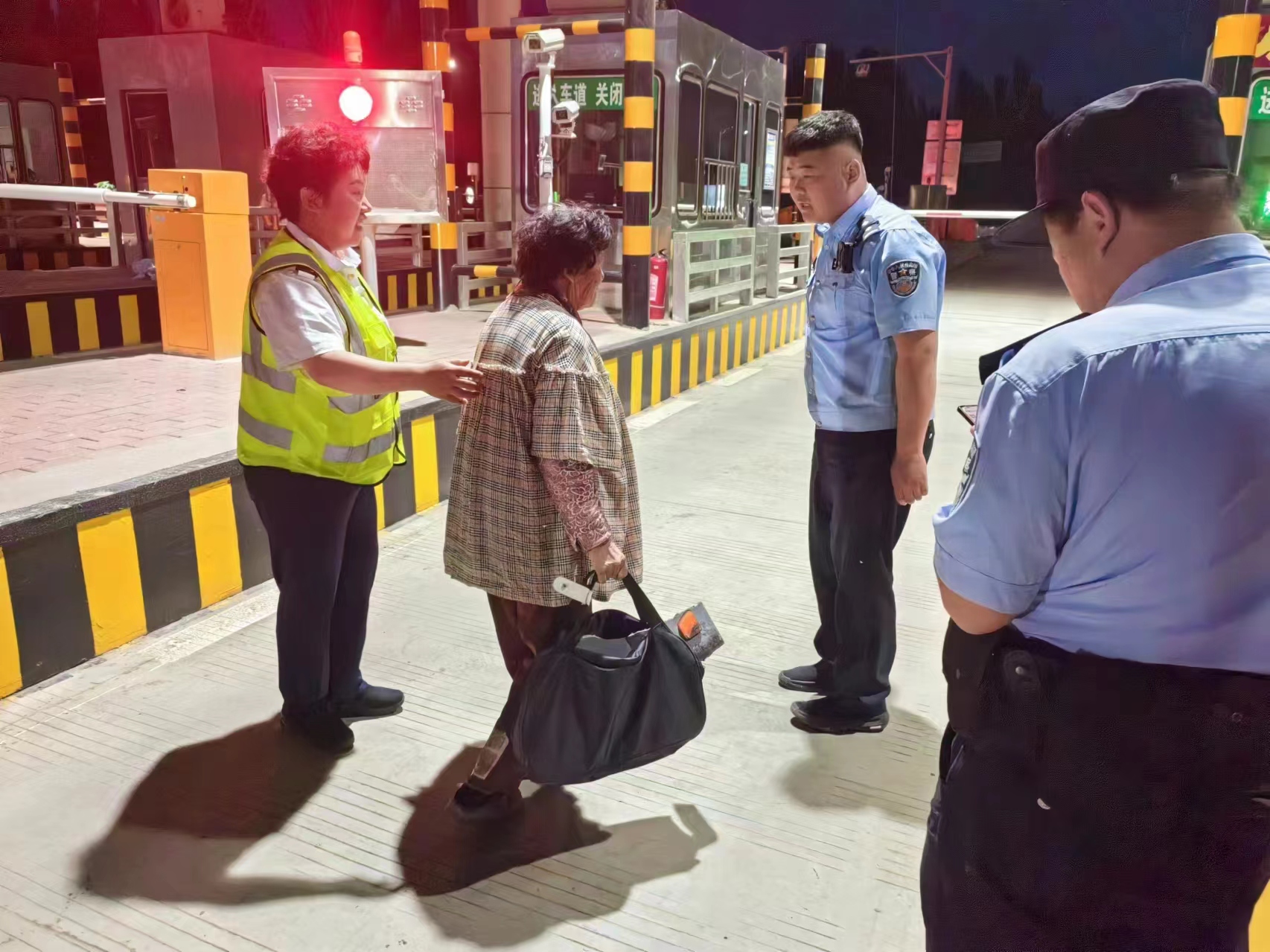 6月12日晚,临河新区收费所工作人员在疏导车辆通行时,突然发现高速公路上有位行人走来,便立即上前询问。“大娘,您怎么从高速上下来的?家在哪里?有人来接吗?”工作人员详细的询问着。老人家说她要回家,不知道怎么就上了高速公路,家在白脑包,要自己走着回家。