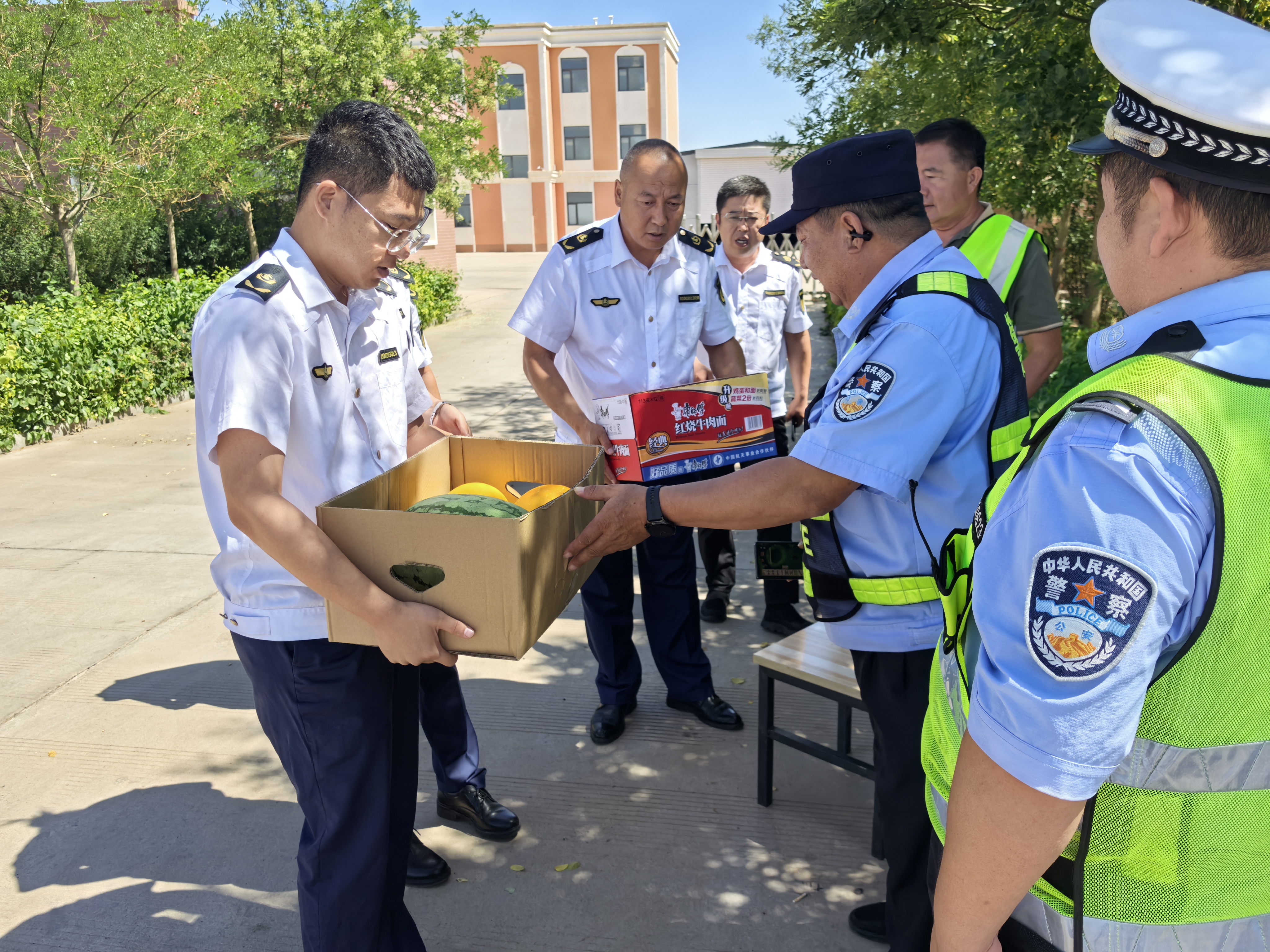 随后,所内组织人员看望慰问了高温下坚守岗位的一线公安干警,为执勤点的工作人员送去绿豆水、方便面、水果等慰问品,为他们送去了殷殷关爱之情,希望他们在炎热的夏季里感到一丝清凉。纳林湖收费所干部职工对公安干警兢兢业业、不畏酷暑、始终坚守交通管理岗位的可贵精神,表达了由衷的敬意,感谢他们为保障辖区道路畅通、人民群众出行安全作出的贡献,所站人员表示会持续加强道路交通安全宣传,切实做遵守交通法规的遵守者和守护者。