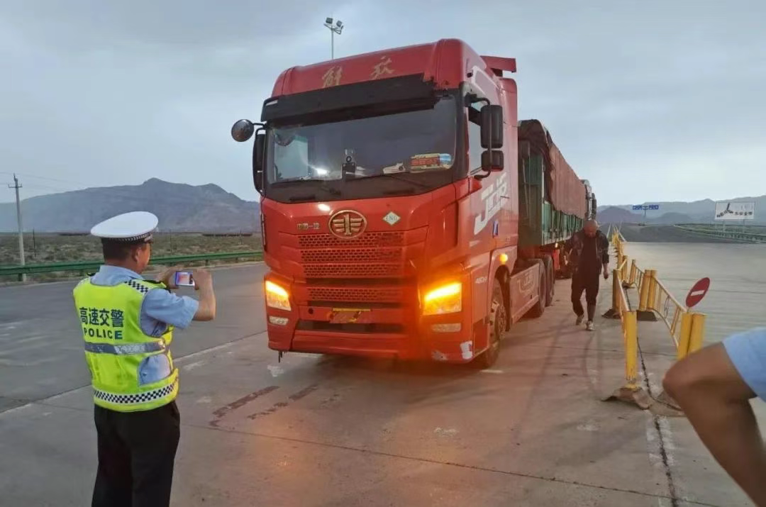 6月22日晚上,纳林湖收费所在出口车道发现两台六轴货车加装“飞机轮”违法超载运输车辆,纳林湖收费所与高速交警启动“联勤联动”工作机制,对货车加装的“飞机轮”进行了依法拆除。