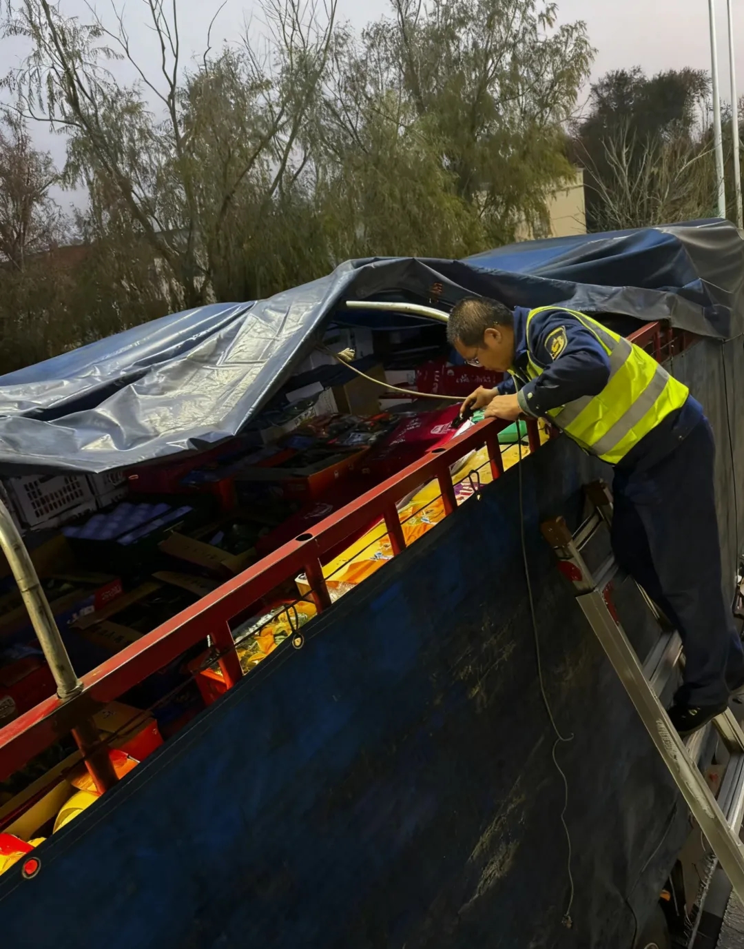 110月25日凌晨3时22分,一辆四轴货车驶入出口车道,驾驶员声称运输货物为“新鲜水果”,申请绿通免费通行。收费员引导车辆进入验货区后,敏锐地察觉到异常——车厢外层虽有少量水果,但内层却被黑色防水布严密遮盖。经要求揭开遮挡物后,露出的竟是大量副食品。面对铁证,驾驶员当场承认混装行为,按规定补缴通行费242元。