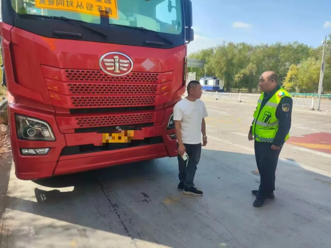 10月29日14时25分,“嘀——”伴随着自助卡机的报警提示,一辆满载货物的六轴货车在西小召收费站入口车道内停下,屏幕上显示吨位为49.35吨。“六轴车咋超吨?不是有5%优惠吗?”司机疑惑着问道,收费班长张栋耐心地为司机解释着:“师傅,六轴双驱货车合法总重限值为49吨,优惠吨位已预设进系统,当前数值是扣除后结果”。随后,货车被当班班长张栋引导退出,针对货车司机不熟悉治超减免政策的问题,收费班长张栋为司机解释了车道计重磅检定标识和符合相关限值规定即可享受合法装载政策,让司机朋友摒弃“多拉快跑”的侥幸心理。
