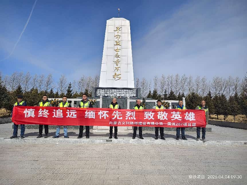 清明时节寄哀思,缅怀英烈铸忠魂。4 月 4 日,内蒙古交科路桥三工程分公司乌石项目部组织党员、预备党员及入党积极分子前往乌海烈士陵园开展祭扫活动。全体人员在纪念碑前肃立致敬,参观英雄事迹长廊,接受红色精神洗礼,并在主题雕塑前重温入党初心,坚定理想信念。