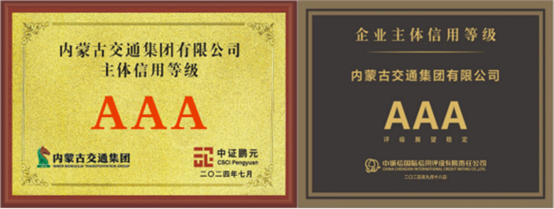 内蒙古交通集团2024年获中证鹏元资信评估股份有限公司AAA主体信用续评后,于2025年9月再次成功获得国内权威信用评级机构中诚信国际信用评级有限责任公司出具的AAA主体信用评级,正式迈入主体信用双AAA评级梯队。两家国内权威评级机构的交叉验证,系统展现了内蒙古交通集团在资本实力、经营能力、风险管控等方面的综合优势,也为集团发展带来了多重积极效应。