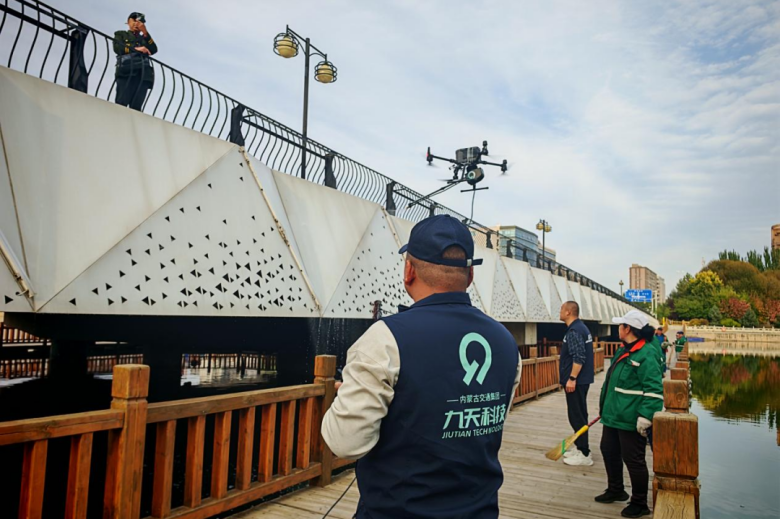 近日,内蒙古九天数字科技有限公司运用无人机顺利完成如意大桥外墙清洁作业,为城市精细化治理探索出“低空作业”新路径。