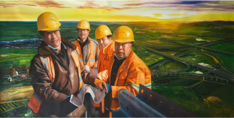 美术作品:《于内蒙高速间,养护工人用坚守绘就平安温暖画卷》