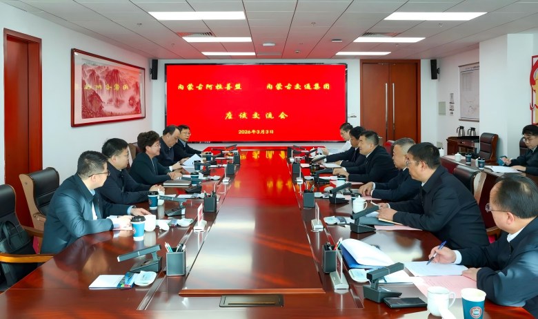 3月3日,内蒙古交通集团与阿拉善盟委、盟行署在呼和浩特市座谈交流。阿拉善盟委书记黄雅丽,盟委副书记、盟长白海林,内蒙古交通集团党委书记、董事长方玉东,党委副书记、总经理洪海参加。