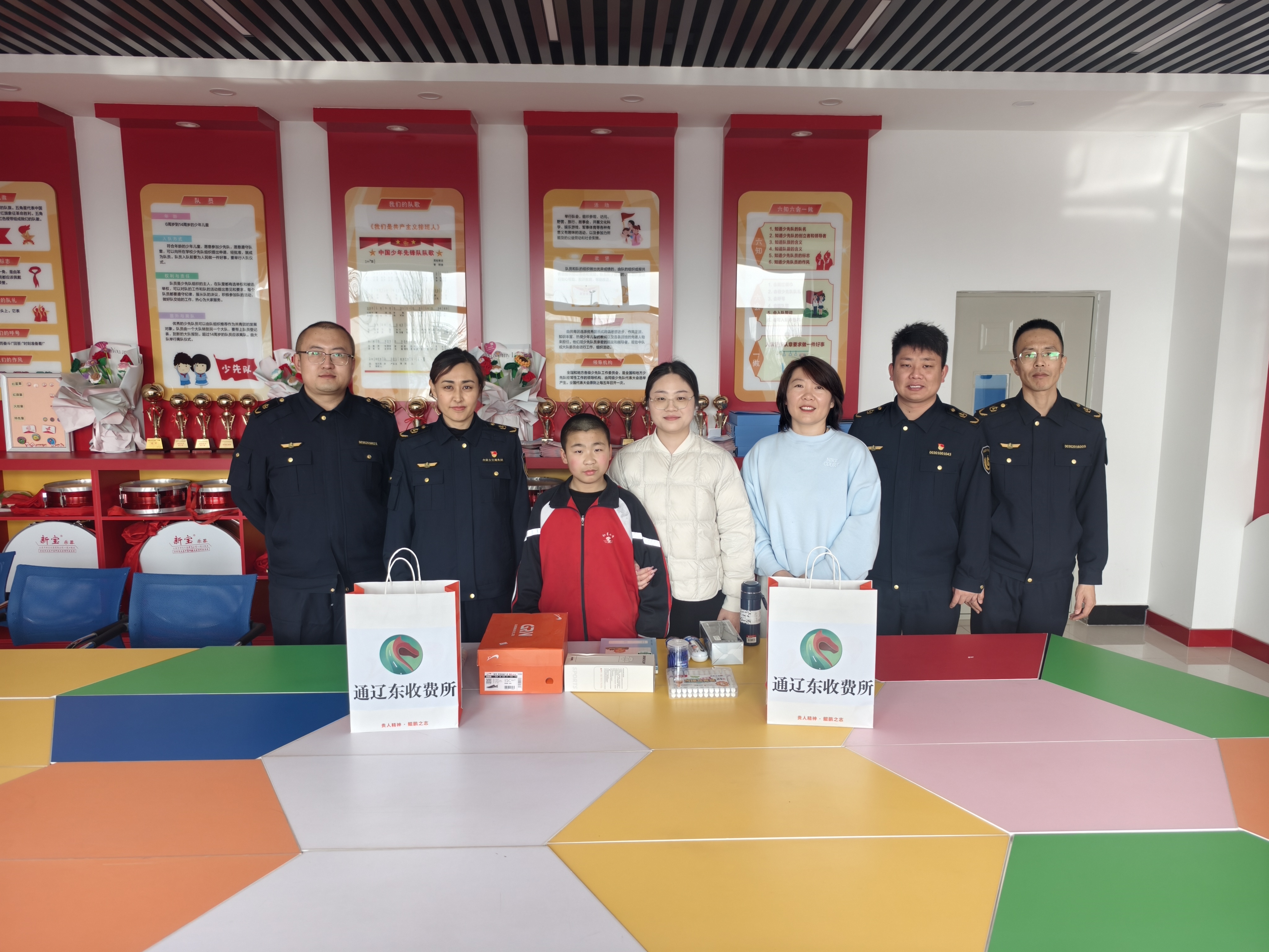 通辽东收费所以分公司“西辽河畔 驿路通途”党建品牌为引领,组织党员志愿者走进红星中心小学,以实际行动传承雷锋精神,展现交通人的责任与担当。志愿者们带着精心准备的生活物品、文具、书籍等学习用品,并详细询问孩子们的学习生活、家庭情况和实际困难,耐心倾听他们的心声,以实际行动践行初心使命,让雷锋精神在高速一线熠熠生辉。