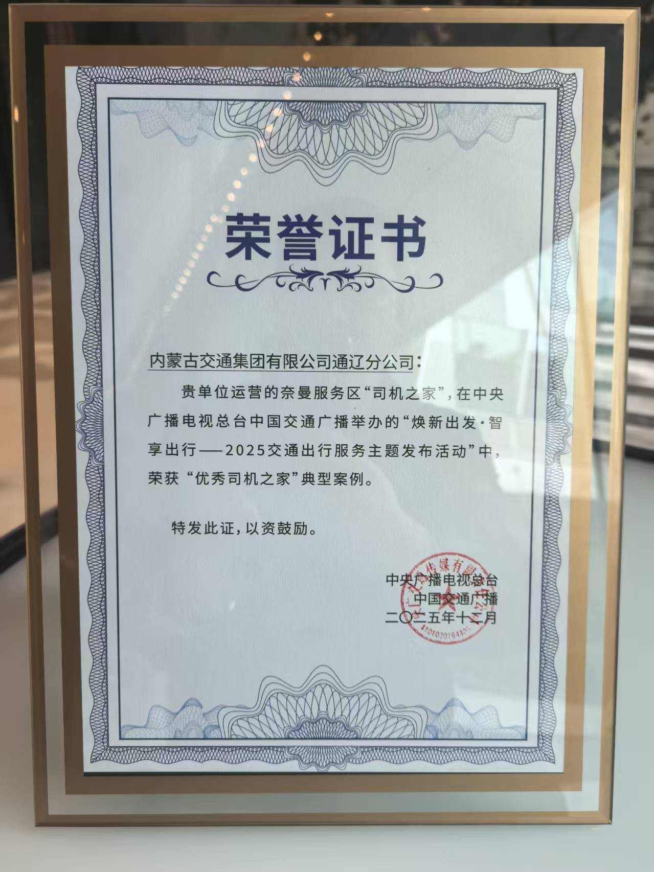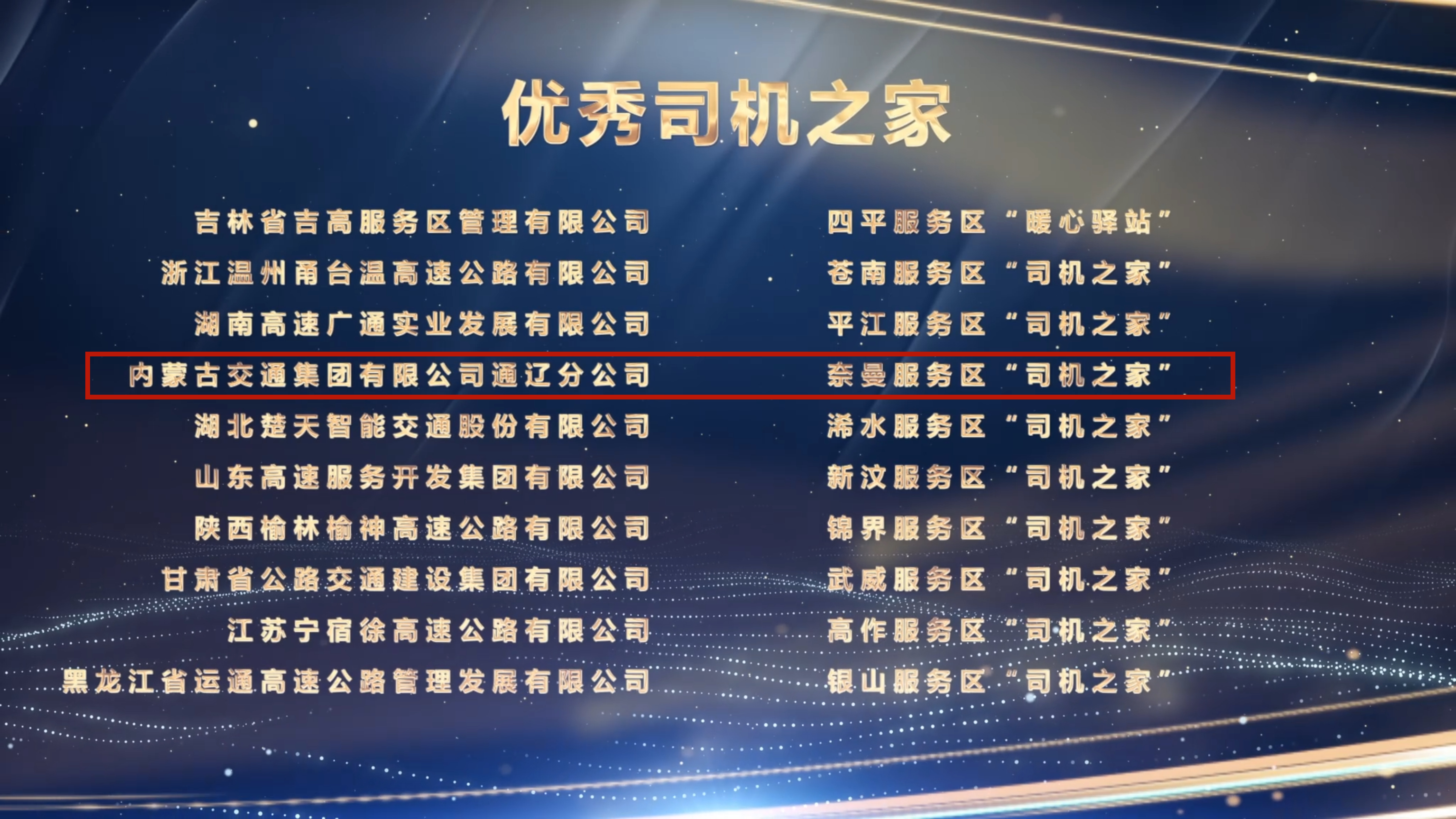 内蒙古交通集团通辽分公司奈曼服务区“司机之家”荣获全国“优秀司机之家”典型案例殊荣