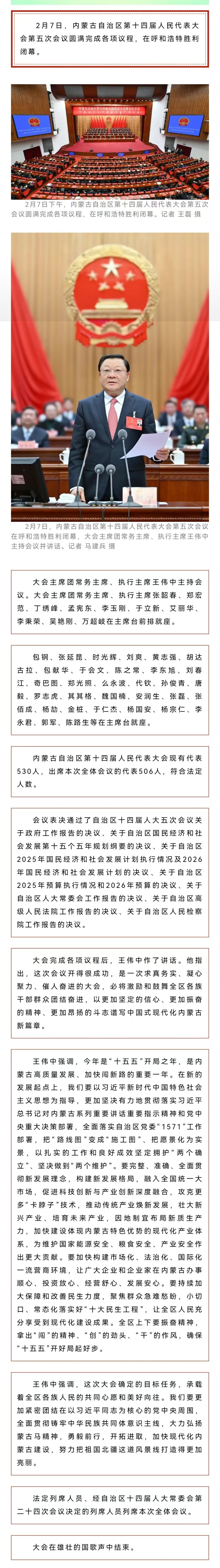 自治区十四届人大五次会议胜利闭幕 王伟中主持并讲话 包钢张延昆出席