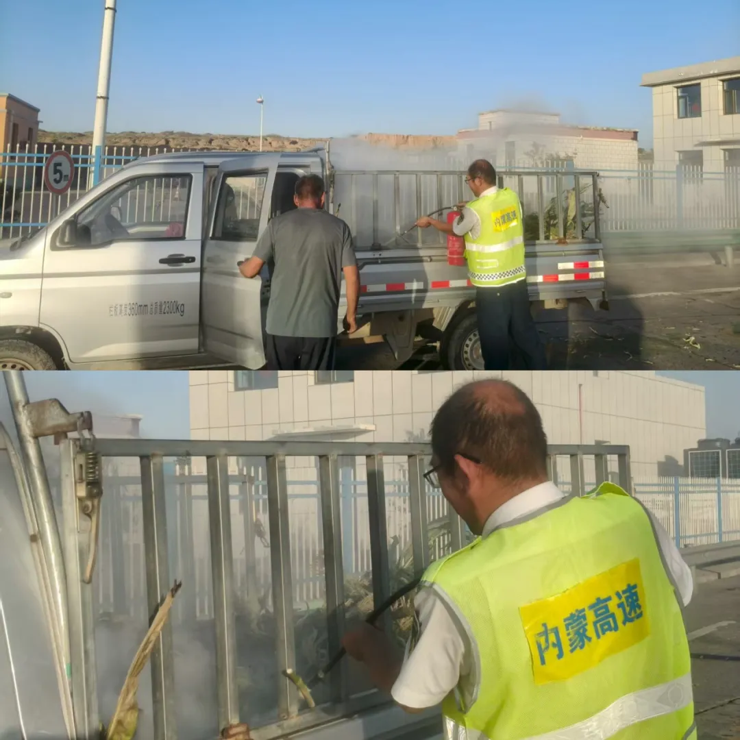 险情发生时,当班班长王飞第一时间发现火情,凭借丰富的应急处置经验,立即启动收费所消防应急预案。他一边快速疏散车道内其他等候车辆,防止次生事故发生;一边迅速召集当班人员携带灭火器、消防沙袋等器材冲向起火车辆,精准对准火源根部展开灭火作业。