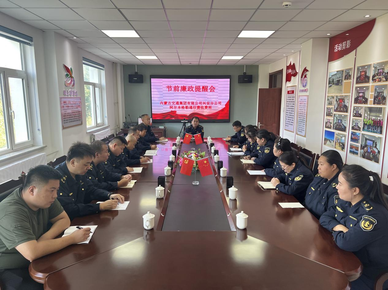 额尔格图收费所、乌兰浩特东收费所分别召开节前廉洁提醒工作会议,着力营造风清气正的节日氛围,全面筑牢员工廉洁自律思想根基。(王金鹏、马丽瑶)