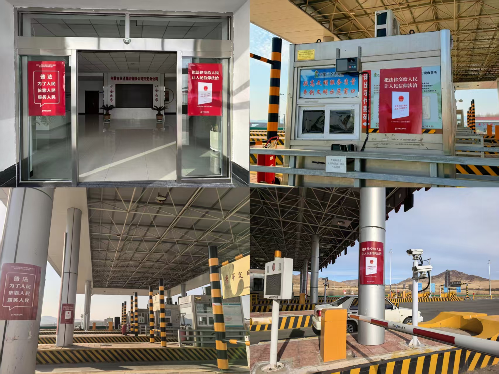 哈拉黑收费所、阿尔山南服务区、前旗收费所、伊尔施收费所、太东收费所结合工作实际,在收费广场、服务区广场、属地村屯等人员流动密集区域设立宣传点,组织工作人员向过往司乘、村民群众发放宣传单,用通俗易懂的方式讲解《中华人民共和国法治宣传教育法》。