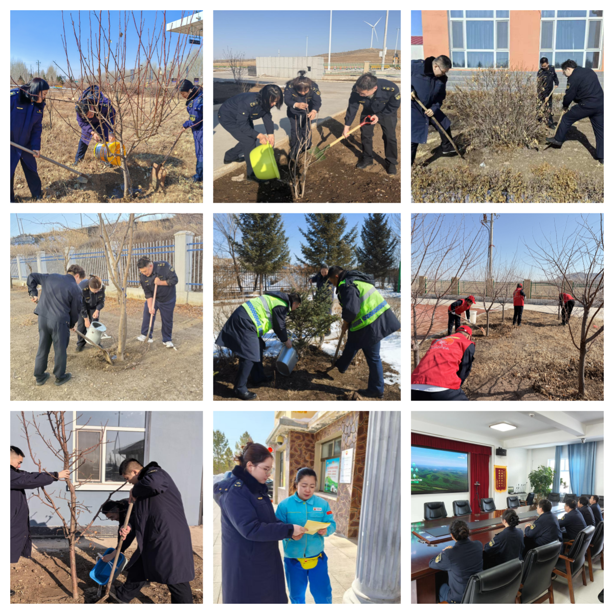 植树现场,尽管初春时节冻土未消、土地寒凉,苗木栽植难度较大,但干部职工热情不减、干劲十足,丝毫没有被低温冻土影响劳作步伐。大家分工协作、默契配合,纷纷拿起铁锹、水桶等工具,全身心投入植树劳作中,挥锹铲土破冻土、扶苗稳正填沃土、提桶浇水润新根,每一道工序都严谨细致、一丝不苟,合力将一株株树苗栽植入地,让稚嫩苗木在春风中挺立扎根。与此同时,各单位还开展了生态宣传和观影活动,大力弘扬植绿、爱绿、护绿、守绿的文明风尚,让绿色环保意识深入人心。