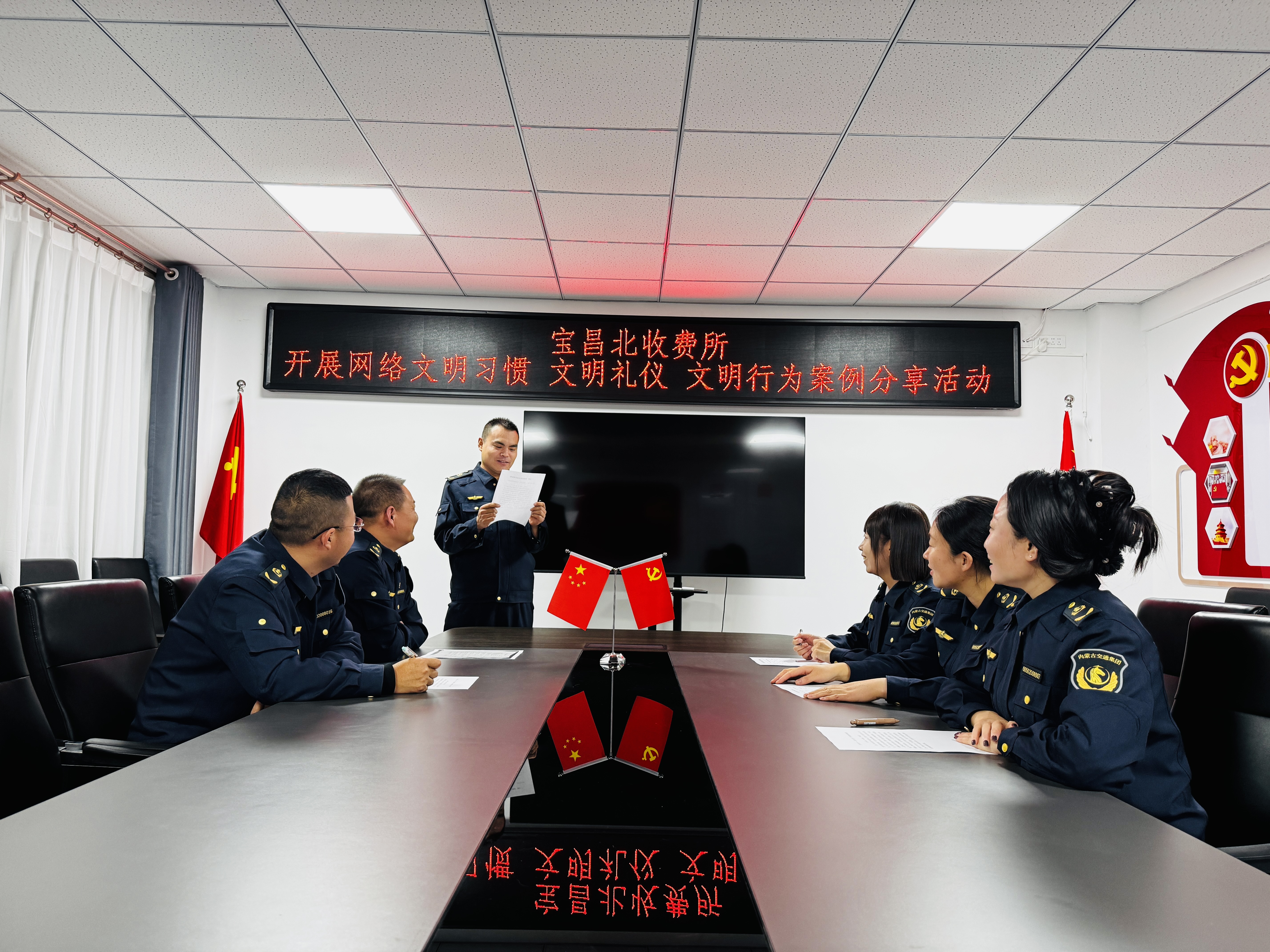 宝昌北收费所组织开展案例分享活动,职工结合工作与生活实际,分享网络文明发声、收费窗口优质服务、主动践行文明行为等方面的真实案例,进一步引导职工争做网络正能量的传播者。