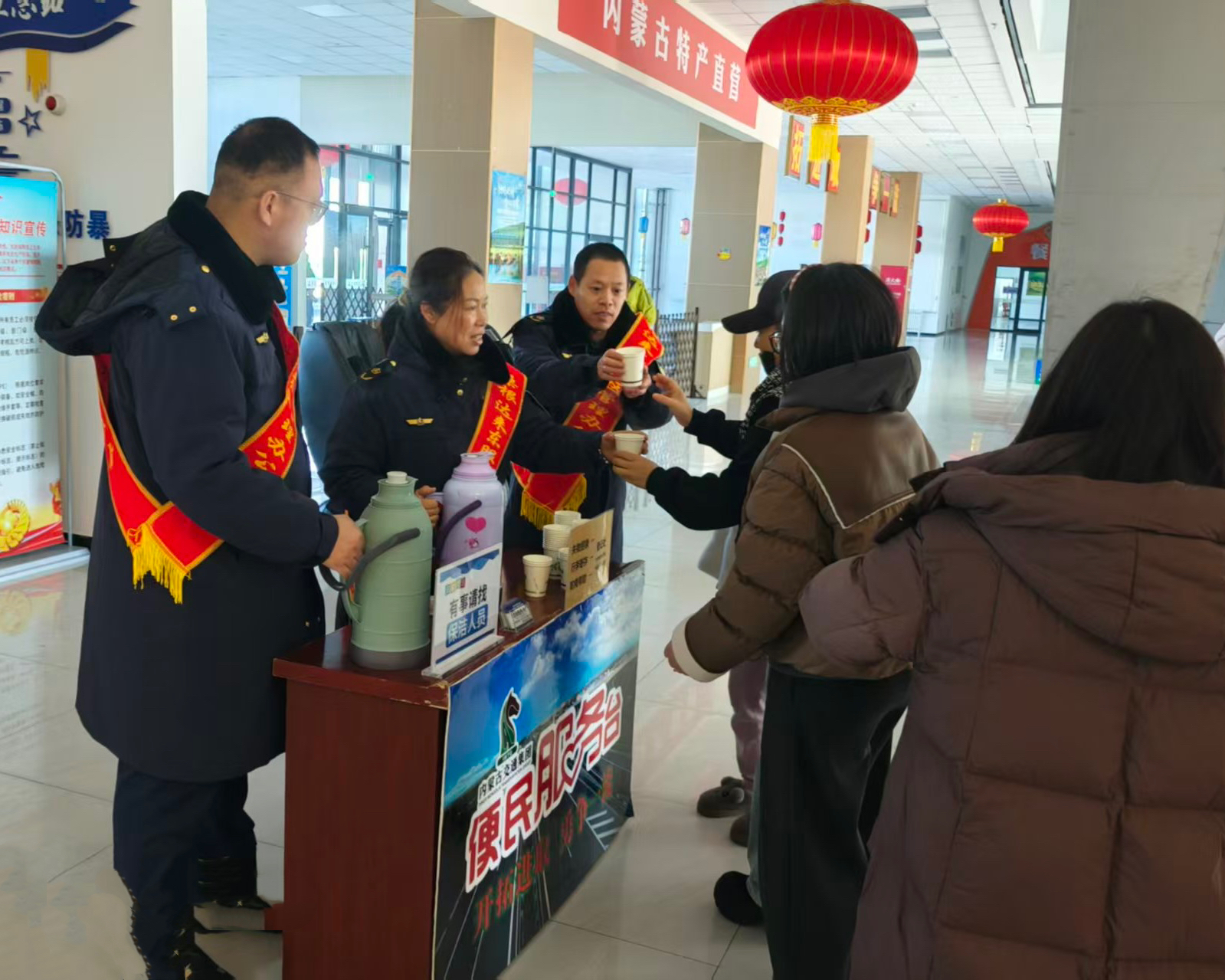 春运、春节期间,桑根达来东服务区升级便民服务措施,在服务大厅设立便民服务点,组织职工为过往司乘提供热水补给、食品应急保障等贴心服务,全力保障春运旅客出行体验。