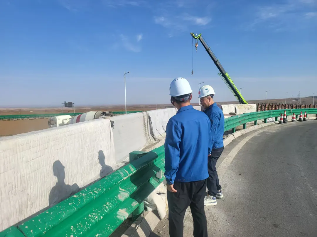 乌银项目主线、辅道及连接线等主体工程已于2024年通过交工验收,当下主要工作有:主线提速、辅道非限治超、塔尔岭收费站拆除、水毁路段优化设计、缺陷修缮、专项验收和手续办理的冲刺阶段。由于工期紧张、任务繁重,为全力保障道路交通安全,确保高速公路安全畅通,项目办全体职工在双节期间主动放弃休假,奋战在施工一线,紧盯剩余工程节点。双节期间,项目办加强路段的巡查频次,还与交警、路政等部门建立联动机制,实时掌握路况信息,通过沿线标识标牌、电子屏等及时发布通行提示,引导车辆有序行驶,全力避免交通拥堵与事故发生。