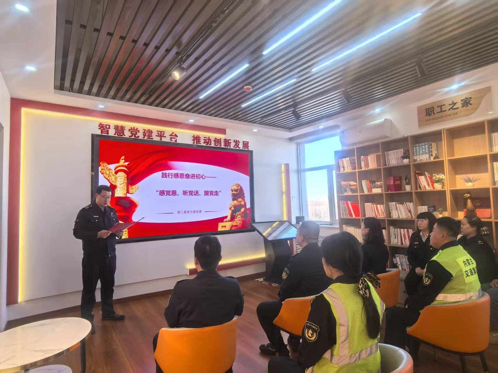 感党恩,从身边保障悟初心。党课中,党支部书记以“看得见的变化”为切入点,带领职工回顾组织关怀下的工作日常。过去一年,从高峰车流疏导时党员带头冲锋,到各民族同事互帮互助的温暖氛围,从数据审核岗逐笔核验车辆信息的精准保障,到行政后勤岗位筑牢运营根基的细致服务,每一项工作的顺畅推进,都离不开党组织的正确领导与支持。“咱们能在安稳的环境里干事、在有温度的团队里奋斗,不是凭空来的,这份组织给予的保障,就是我们感恩奋进的底气。”朴实的话语让职工深刻认识到,“感党恩”不仅是情怀,更是立足岗位、做好每一件事的初心,进一步凝聚起“心往一处想、劲往一处使”的团队合力。