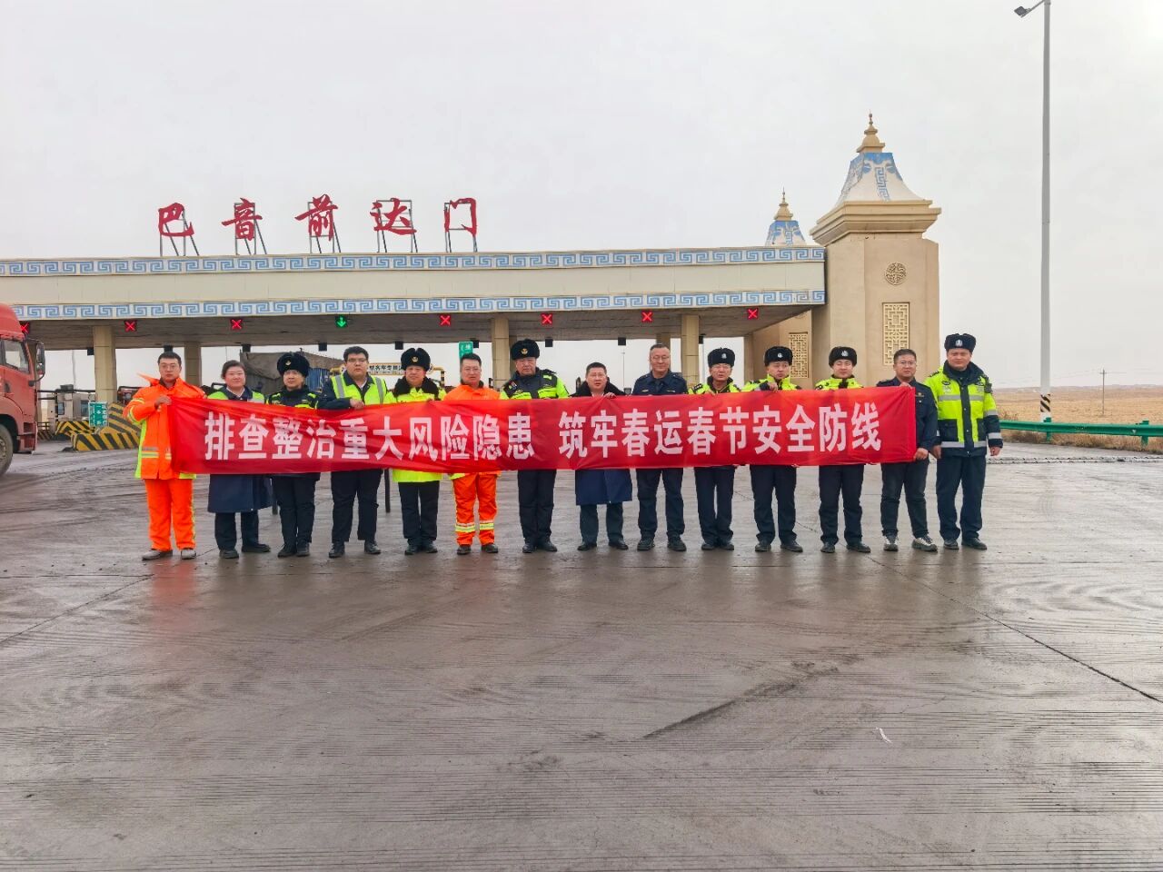 前达门收费所、甘其毛都收费所。前达门收费所联合甘其毛都收费所、交警、路政、养护等“一路多方”单位,召开春运联勤联动工作部署会,开展实战化安全演练,并同步启动春运便民暖心服务活动,以“安全守护+温情服务”双抓手,为群众温暖“回家路”。部署会上,各参会单位围绕春运车流、人流叠加的特点,结合辖区路段通行实际,深入研判雨雪冰冻、车流高峰等多重风险隐患。会议明确了信息共享、联合执法、应急响应、便民服务四项核心工作任务,建立起“一路多方”常态化沟通协调机制,实时互通路况、天气、管制等信息。细化恶劣天气、车辆拥堵、设备故障等突发场景的应急处置流程,明确各单位职责分工。部署会结束后,安全实战演练随即展开。演练科目收费广场车流拥堵疏导。各部门闻令而动、协同作战。面对车流拥堵,收费所迅速开启备用车道,增派人员引导车流;交警与路政人员现场实施客货分流,规范通行秩序,整个流程紧张有序、衔接紧密。演练后,前达门收费所的“春运便民服务点”也正式启用,暖意融融的服务瞬间拉近了与司乘的距离。志愿者在收费广场为过往司机免费提供热水、应急药品,以及车辆简易维修工具。一位货车司机接过热水,连声道谢。一声声问候、一次次帮扶,让凛冽的冬日充满温情,也让春运旅途更有温度。