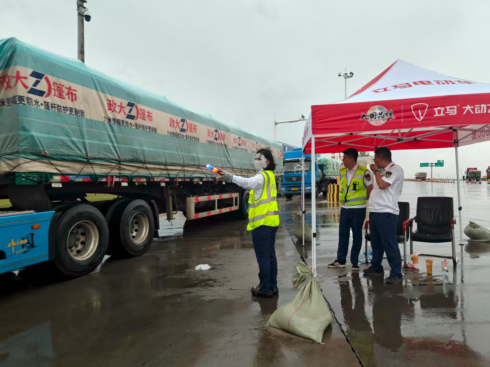 险情发生后,收费所立即启动防拥堵应急预案,第一时间向分公司上报情况,并迅速加开出入口应急车道,确保收费广场全程无拥堵、无事故。同时,安排工作人员前往匝道入口进行车辆分流,耐心向滞留司乘做好解释工作,缓解其急躁情绪,并针对性劝导前往新疆的货车提前绕行,避免因长时间等待影响行程。
