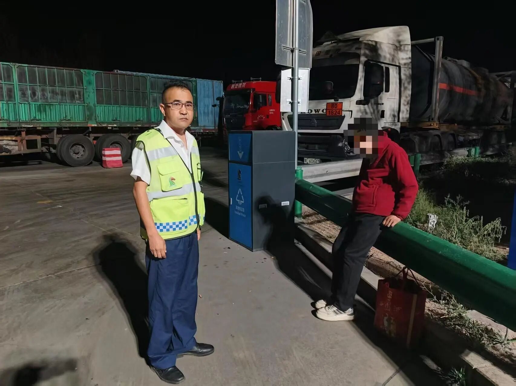 9月2日凌晨1时08分,磴口服务区管理员苏日图在执行夜间巡查任务时,行至南区广场,发现一名男子独自坐在入口车道护栏上,位置十分危险。上前询问时,发现该男子语无伦次、言语不清、精神恍惚,初步判断其精神状态异常,急需紧急救助。