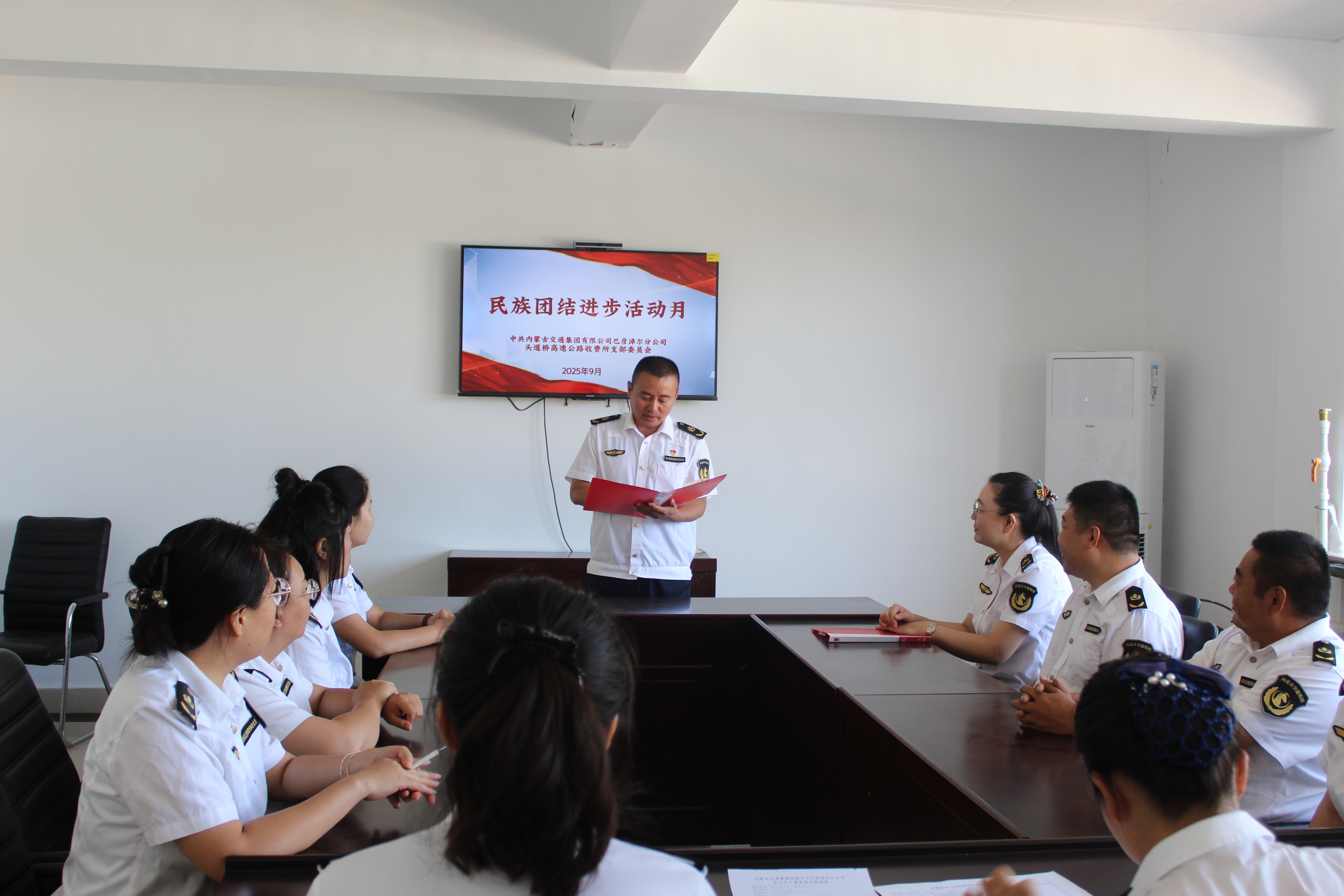 西小召高速公路收费所党支部于 9 月 19 日下午组织全体党员开展主题学习交流会。党支部书记带领党员学习习近平总书记相关重要讲话精神,党员结合工作实际交流发言,将民族团结理念融入日常服务,随后集体观看《海的尽头是草原》,进一步深化对民族团结重要性的认识。