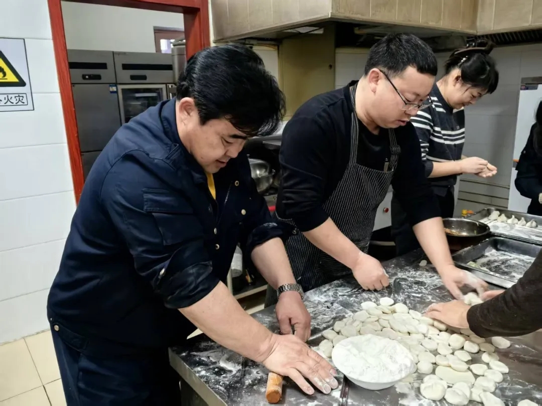 纳林湖党支部的活动现场温情满满,党员干部充分发挥先锋模范作用,带领职工分组协作,和面揉团、细致调馅、擀皮塑形、巧手包饺,每个环节都有条不紊地推进。面对包饺子不熟练的同事,老党员们主动上前手把手指导,耐心传授技巧;当个别小组出现食材短缺的情况,各组之间迅速互通有无、默契补位。整个现场充满了欢声笑语,尽显团结和睦的“家”氛围,生动践行了“互相支持、互相理解、互相包容、互相成就”的相处理念。