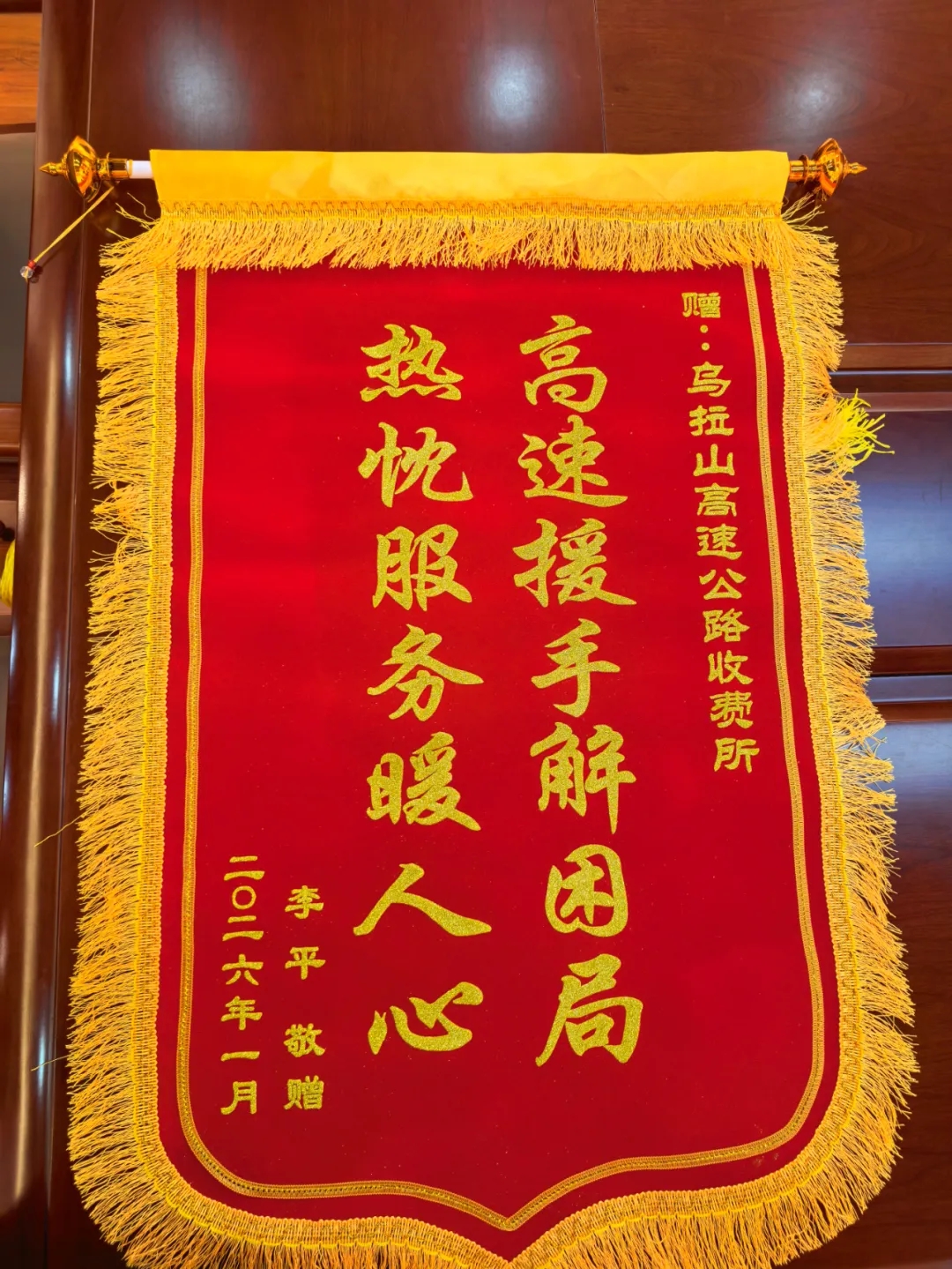 “真的太感谢了!你们不仅解了我的燃眉之急,还没耽误运输任务,这份贴心服务让我心里特别暖!”李师傅握着工作人员的手连连道谢,事后还特意制作了锦旗以表达交通路上的高效联动、为民解忧的诚挚谢意。