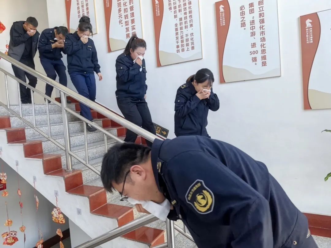 组织全体员工集中观看消防安全警示教育片,以真实案例增强防范意识。模拟设备机房起火场景,开展消防逃生演练,员工们按照预案有序疏散,并现场实操使用灭火器进行扑救,有效提升了员工的应急处置和团队协作能力。