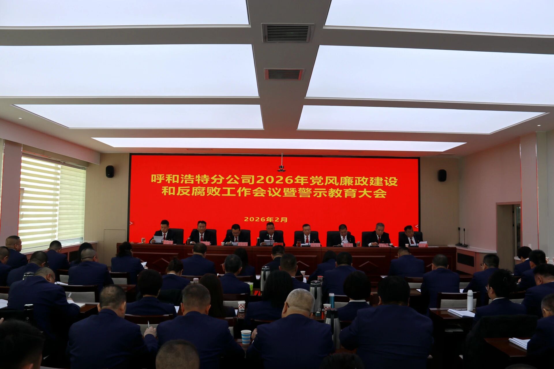 2月13日,呼和浩特分公司召开2026年党风廉政建设和反腐败工作会议暨警示教育大会。会议总结分公司2025年党风廉政建设和反腐败工作成效,分析当前工作形势,部署2026年重点工作任务。分公司党委书记乔光华作讲话,党委委员、纪委书记潘纯至作纪委工作报告。