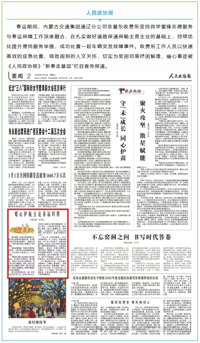 通辽分公司奈曼东收费所春运暖心事迹获央媒点赞