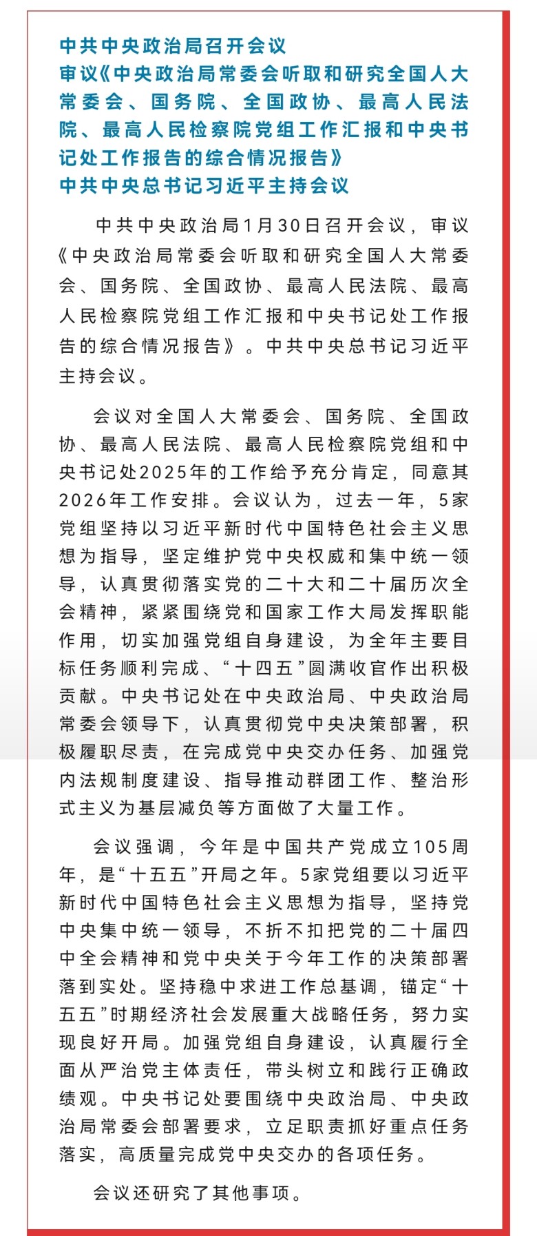 中共中央政治局召开会议 中共中央总书记习近平主持会议