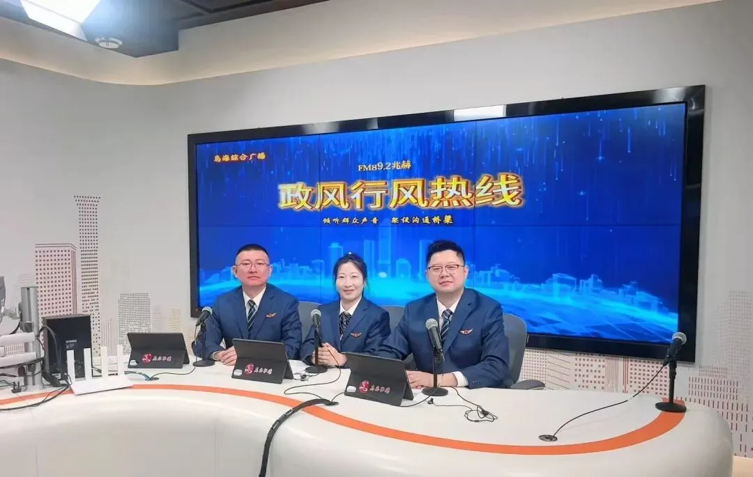 为进一步畅通沟通渠道,主动接受社会监督,提升交通出行服务质效,2月13日,内蒙古交通集团乌海分公司副经理高巍携运营部王浩宇、孙嘉俊、路网监测中心张欢,走进乌海市广播电视台《政风行风热线》直播间,与听众线上面对面,直面群众咨询、回应民生关切、解答出行难题,以实际行动践行“人民交通为人民”的服务宗旨。