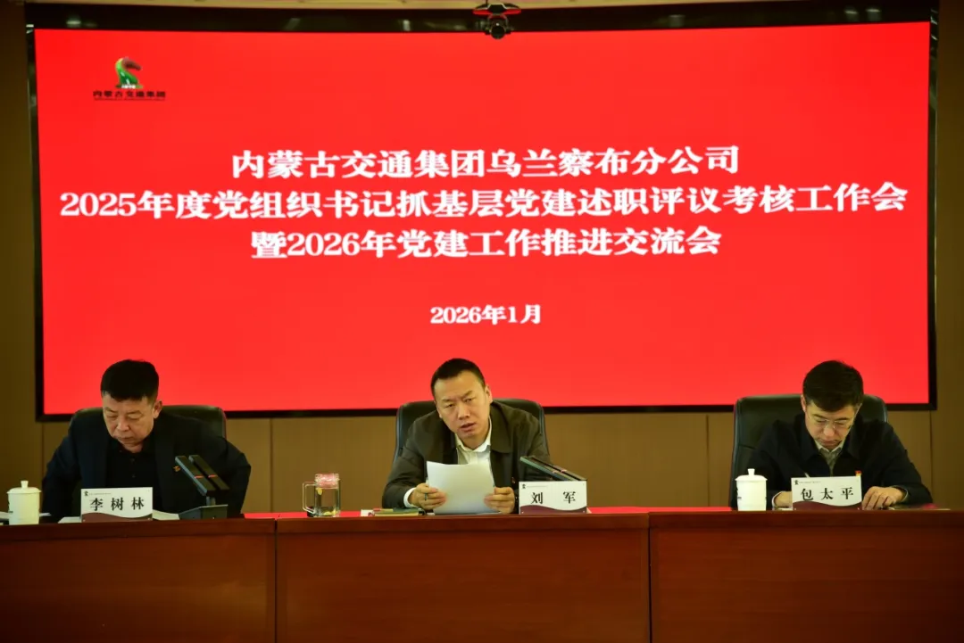 1月23日,内蒙古交通集团乌兰察布分公司召开2025年度党组织书记抓基层党建述职评议考核工作会暨2026年党建工作推进交流会,全面总结2025年党建工作成效,精准部署2026年重点任务。分公司领导班子成员、各党支部书记、所长参加会议。
