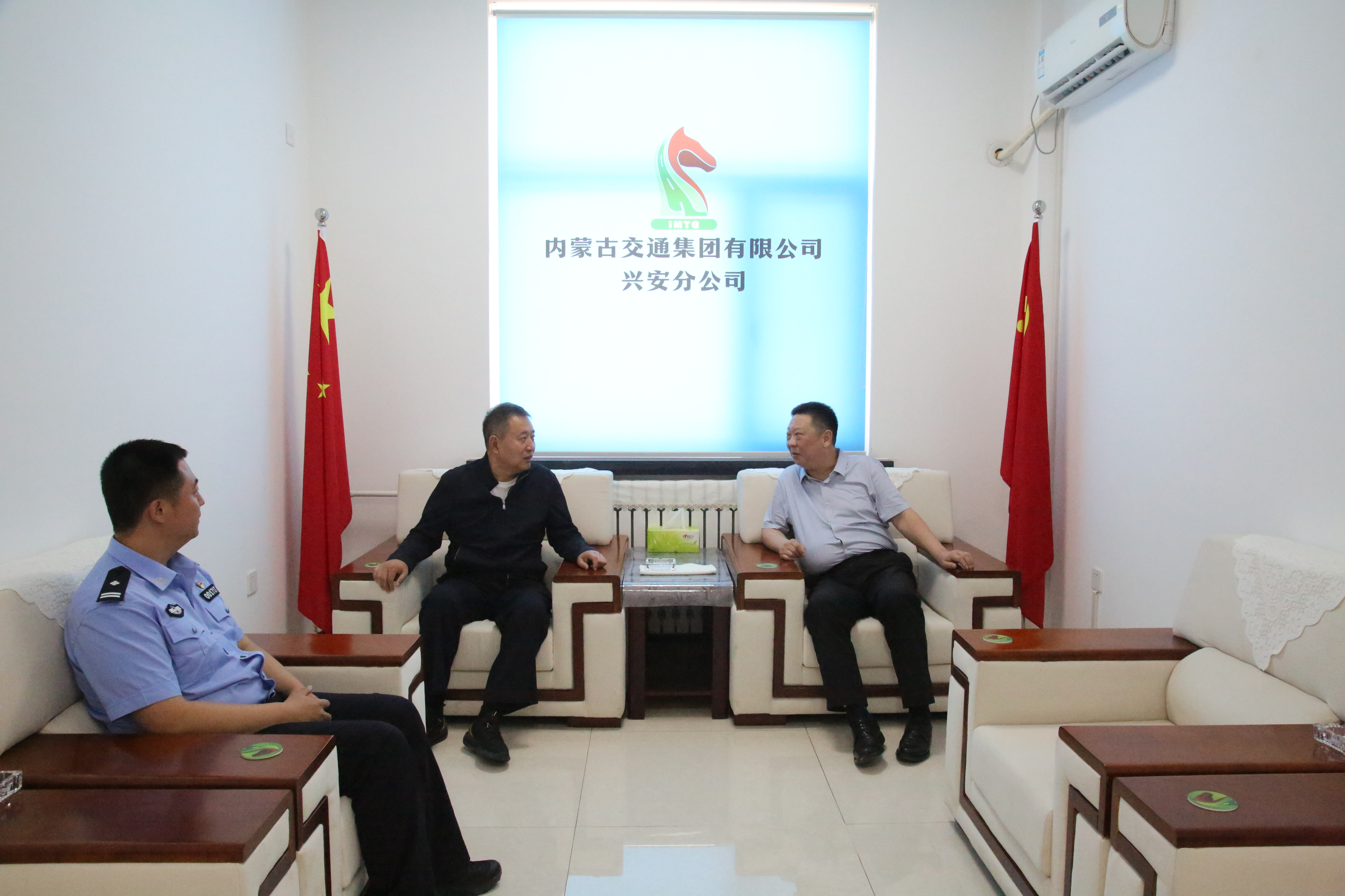 9月25日,兴安分公司党委书记尹小虎与内蒙古自治区公安厅交通管理总队高速公路五支队主要负责人刘忠军一行,就“双节”假期高速公路保通保畅、维稳安保及深化协作机制等方面进行座谈交流。属地天骄大队大队长方品参加座谈。
