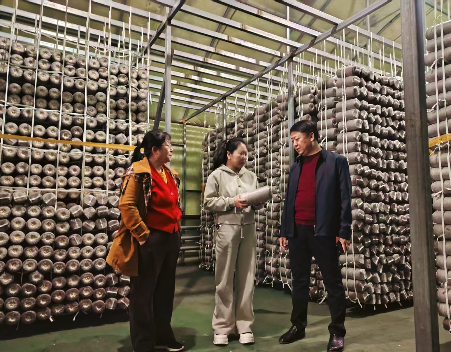 为筑牢产业根基,裴高慧牵头攻克技术难关。他带领村 “两委”赴黑龙江省学习先进种植经验,还邀请技术骨干常驻村里,手把手指导村民,彻底点燃了大家的种植热情。同时,他全力打通产销全链条:联动原单位通过消费帮扶拓销路,争取保底收购政策稳收益,引入龙头企业做精深加工提附加值。2025年,他成功争取120万元资金,建成5000平方米菌菇种植基地,培育黑木耳、白木耳等7个品种,预计为村集体经济增收42万元。基地还优先吸纳脱贫户、监测户务工,让村民在家门口实现就业增收,小小的菌菇成了撬动乡村振兴的“金杠杆”。