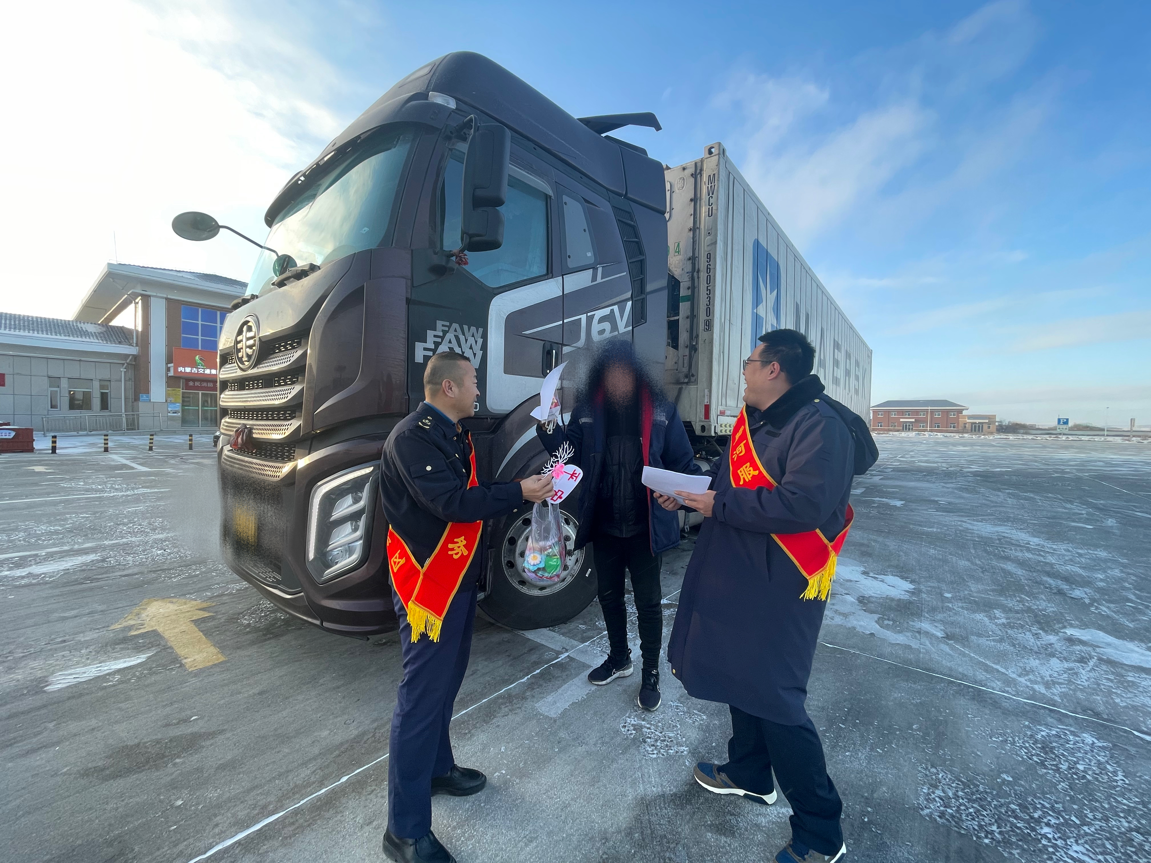 锡林浩特收费所工作人员协助司乘高效办理自助通行缴费,耐心向货车司机讲解通行政策及服务指南,以细致服务保障司乘一路畅行。