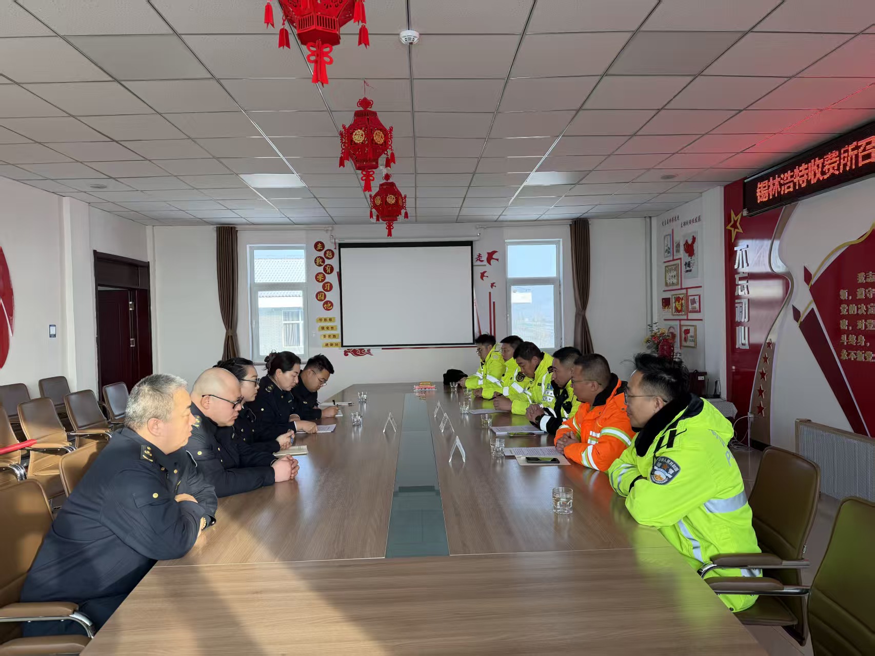 锡林浩特收费所联合高速交警锡林浩特大队、交通运输综合执法总队七支队十大队、锡林浩特养护作业中心召开“一路四方”联勤联动会议,围绕2026年春运春节保障、恶劣天气应急处置及重点车辆管控,进一步明确协作流程,建立24小时沟通机制,全力保障春运春节道路安全畅通。