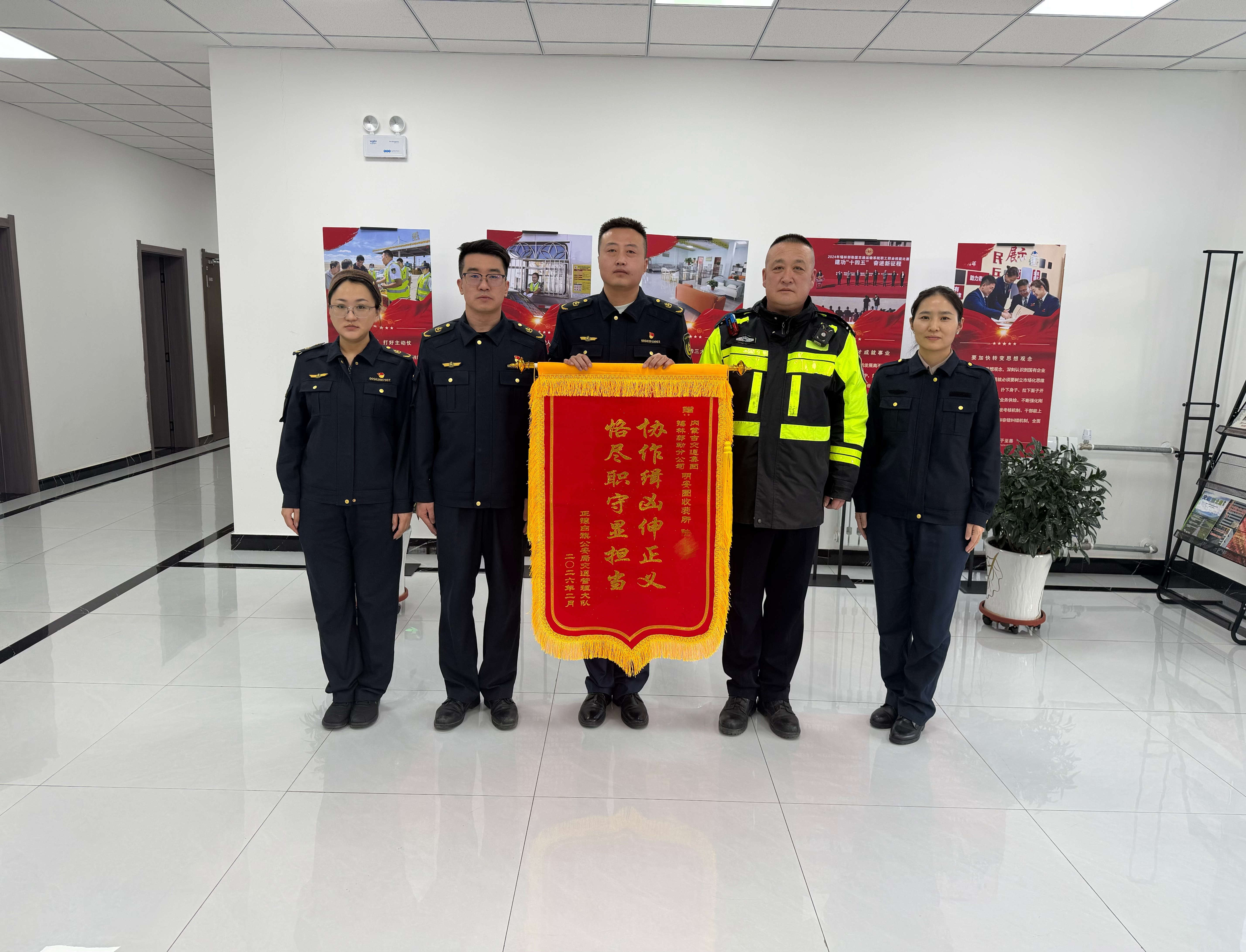 2月13日,锡林郭勒盟正镶白旗公安局交通管理大队送来一面印有“协作缉凶伸正义,恪尽职守显担当”的锦旗,这既是对收费所职工临危受命、机智处置的高度赞扬,也是对内蒙古交通集团锡林郭勒分公司明安图收费所积极协作、勇担社会责任的充分认可。