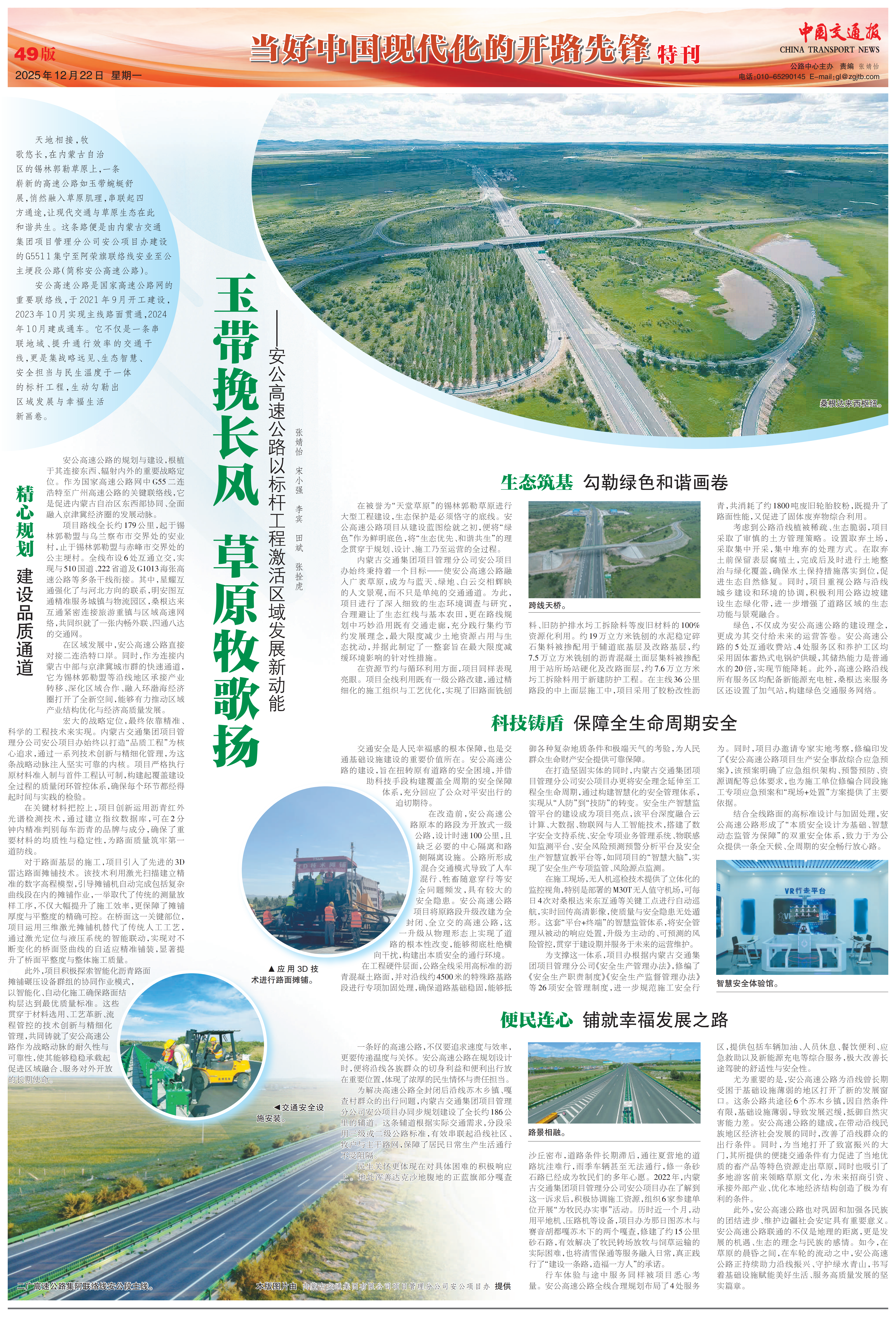 前言 2025年,项目管理分公司锚定集团“开拓进取、勇争一流”的奋进目标,将“精益求精、止于至善”的经营理念在实际中践行,切实担当自治区公路建设主力军的使命职责,牢记嘱托、保持定力、踔厉奋发、勇毅前行,在集团党委的关怀和指导下,各项目圆满完成年度建设投资任务,多项工作取得了标志性成果。 2025年,项目管理分公司建设管理公路工程建设项目14个,计划完成全部投资25亿元。承接集团运营养护类项目24个,计划完成全部投资6.54亿元。 新科项目、查草项目通过交工验收;二赛、白安、安公、乌银等项目完成全部收尾工作;G1816乌石项目打造自治区“智慧梁场”与钢结构桥梁建设新标杆;G1015新科项目以“鲁班奖”工程工艺标准打造房建精品工程;多个项目在施工中打造智慧梁场、数字化拌合站、路面3D摊铺、无人机巡检等智慧工地场景,积极推广钢渣、粉煤灰等工业固废利用技术;签约安全管理、质量检测等专业团队强化施工过程管控;以“草原杯”“李春奖”“鲁班奖”为建设目标,打造内蒙古自治区公路建设品质工程、精品工程、样板工程、廉洁工程,接下来让我们跟随小编看看项目管理分公司各项目在2025年这一年的建设成果。 查草项目——攻坚破局践初心 笃行实干守承诺 2025年,是查草项目决战决胜的关键一年,面对主线新建段、配套的辅道工程、房建工程交安工程以及机电工程推进的多重任务,项目全体参建者以“不达目标誓不罢休”的决心,在建设工地上掀起攻坚热潮,用奋斗书写答卷,用实干兑现承诺,让这条连接内蒙古东西部的交通大动脉加速成型。 攻坚破局,以奋楫争先啃下建设“硬骨头” 项目将“奋楫争先”精神贯穿全程,年初直面30Km主线新建段、118Km辅道的巨量剩余工程,项目办创新施策,倒排工期制定节点计划,组建3支“攻坚小组”,推行“月计划、旬调度、旬考核月评比”机制,累计召开调度会12场、开展评比5次。在冲刺阶段及时启动“百日攻坚”活动,期间建设者们开启“24小时作战模式”,投入摊铺机15台、压路机35台,昼夜不间断施工,最终提前10天实现主线、辅道全线贯通,全年累计完成路基土石方875万立方米、桥涵架设59座等关键节点。 攻坚破局,以坚定笃行筑牢质量安全“生命线” 项目始终坚守质量安全底线:质量管理方面,推行“三级检查+第三方检测”机制,从施工班组自检把控细节,到项目部复检排查隐患,再到监理单位终检严格把关,全年开展各类质量检查12次,整改各类问题96项,达到了路基压实度合格率99%、路面平整度达标率98%;实行“首件验收制”,对梁板施工、路基填筑、路面摊铺等核心工序完成样板验收16处,确保工艺标准全覆盖。 安全管理:召开安全生产例会和专题会议共13次,参会人员504人次;开展各类安全检查33次,排查隐患问题330项,整改率100%;劳务工人累计进场3296人,特种作业人员累计进场165人;累计投入安全生产费3444.5万元;组织开展防洪防汛及交通组织应急演练2次,参演人数106人次;全年实现“零事故”目标。 攻坚破局,以精益求精兑现建设承诺 全年圆满完成“主线辅道双贯通、质量安全双达标”目标;主线全线贯通,打通G5511集宁至阿荣旗联络线“最后一公里”;房建工程中,4处收费站、2个养护工区及1个服务区主体结构全部封顶,二次结构施工完成85%。项目建设获属地政府及沿线群众高度认可,累计收到沿线政府及群众锦旗10面,以“为民修路”的初心践行社会责任,为内蒙古东西部协同发展注入强劲动能。